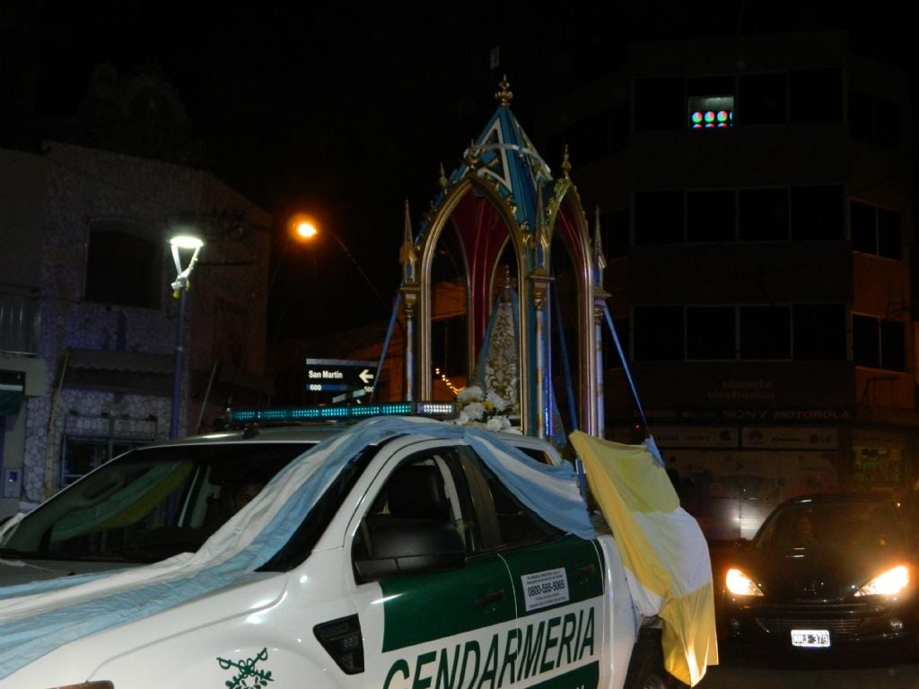 Santuario Mariano en una urna dispuesta en un móvil de Gendarmería Nacional,