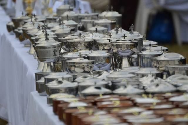 una gran cantidad de sacerdotes y ministros de la Eucaristía se distribuyeron