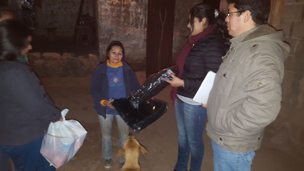 pequeños productores y artesanos. Se entregó ropa, frazadas, y alimentos no