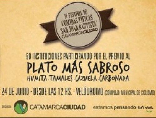 La Municipalidad de SFVC, invita a los vecinos a participar del 4to Festival de Comidas Típicas San Juan Bautista el día viernes 24 en el Velódromo (Complejo Municipal de Ciclismo) a partir de las 12. Participarán 50 instituciones buscando quedarse con el primer premio al "Plato” más sabroso.
