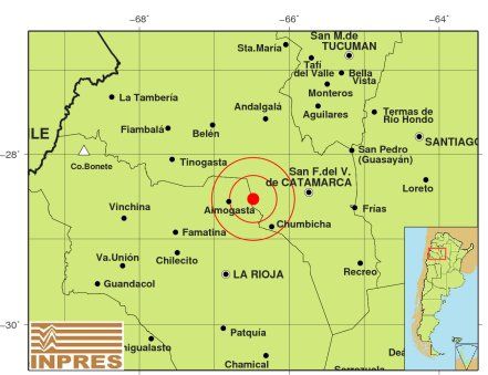 Según información del INPRES, el movimiento telúrico ocurrió a las 07:37:55 horas y el epicentro fue a 73 km al O de San F. Del Valle De Catamarca, 104 km al N de La Rioja y 31 km al E de Aimogasta.