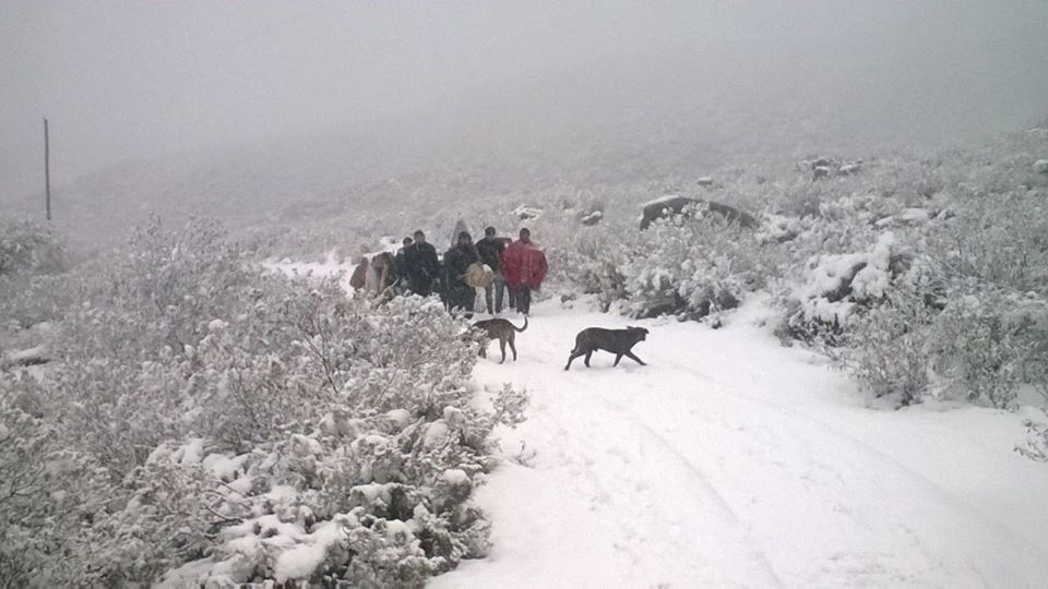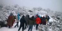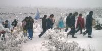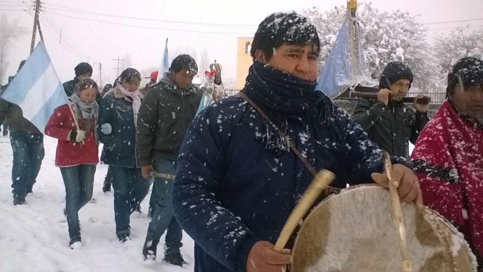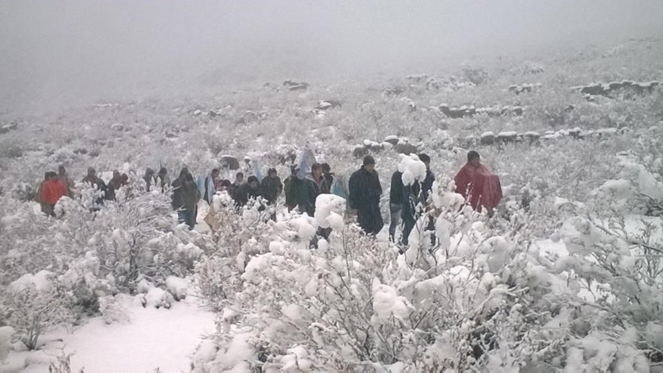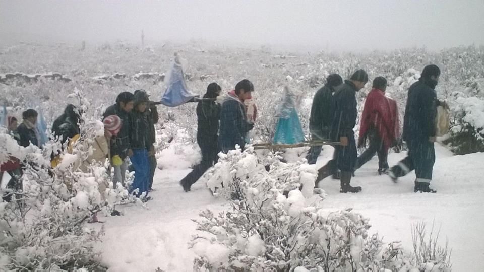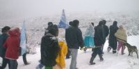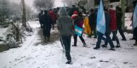 peregrinos marcharon en medio de la nieve que cayó en la zona y con