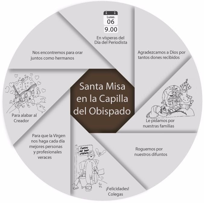 Durante esta celebración eucarística se rogará por los colegas que se desempeñan en los distintos medios de comunicación social y oficinas de prensa de los organismos estatales, y por todos los trabajadores del ámbito de la comunicación social.