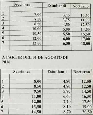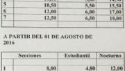 El boleto estudiantil costará en julio $3,75 y en agosto $4,80. La tarifa nocturna se fijará en $10,50 a partir de julio y en $12 en agosto.