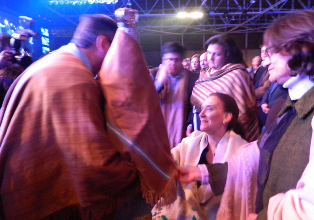 y el Intendente de la Capital, Lic. Raúl Jalil. Engalanada con un poncho de