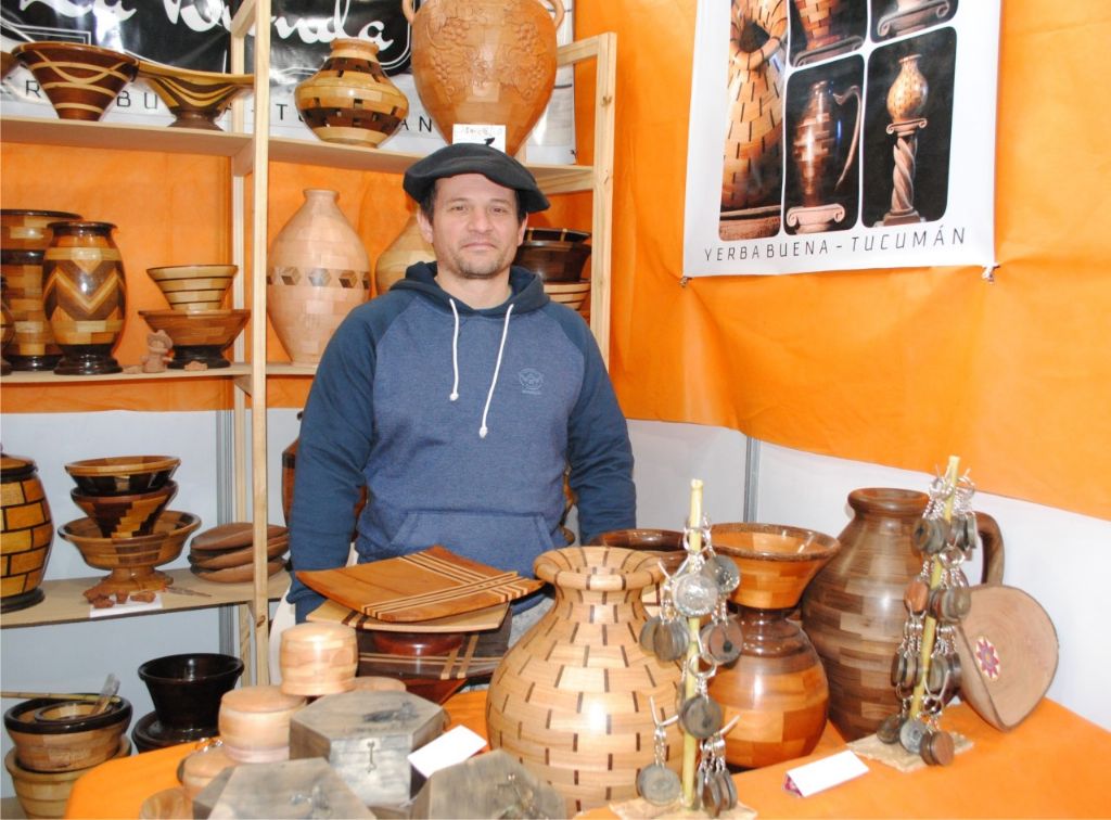 Ganador de la 1era Mención en "Tornería Segmentada” en festivales de Córdoba, Jesús Díaz contó en el marco de la Fiesta Nacional e Internacional del Poncho que hace 20 años trabaja en tornería segmentada.