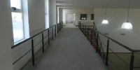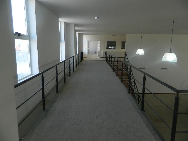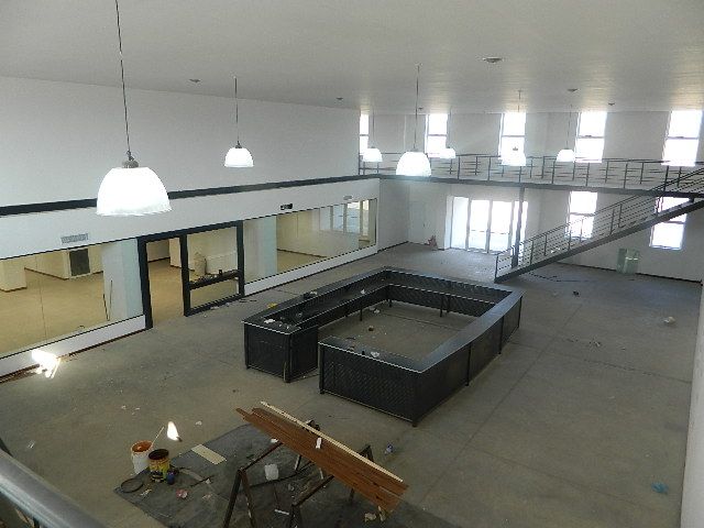 rampa y escaleras de acceso a los diferentes espacios; isla para atención al