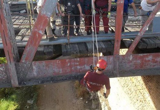 perra, de avanzada edad, estaba atrapada en el sifón del Canal de Riego de Tres