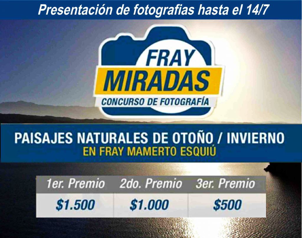 El área de turismo y cultura de la Municipalidad de Fray M. Esquiú informa a los interesados en participar del concurso fotográfico "Fray Miradas" que podrán presentar sus fotografías hasta el jueves 14 de julio.