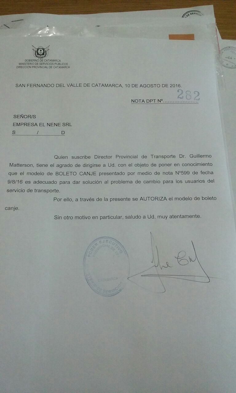 Guillermo Matterson, autorizó mediante nota N° 282 presentada en la jornada de