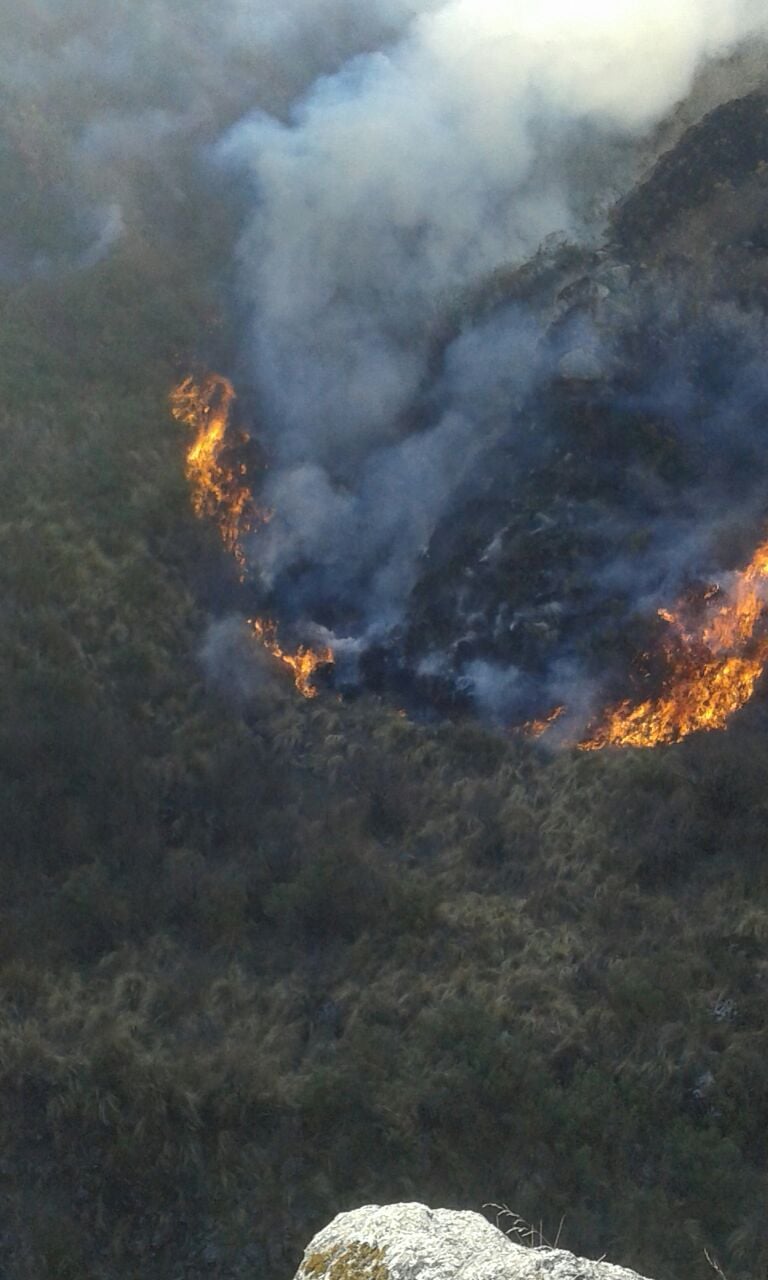 con sus pares de aquella ciudad para sofocar el fuego que todavía sigue