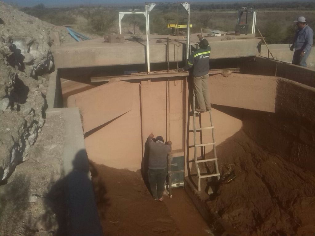 está trabajando en la colocación de compuertas nuevas en el desarenador en la