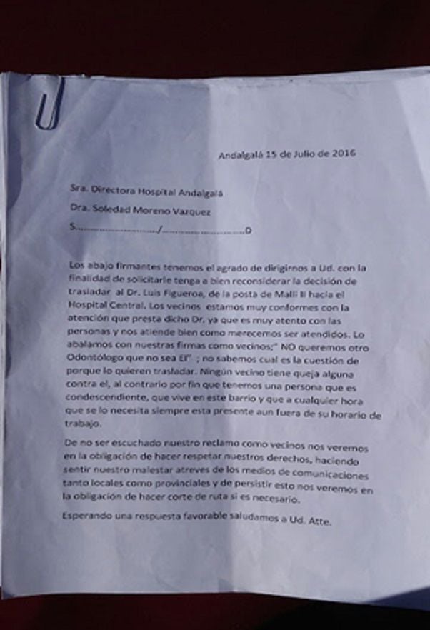 de no contar con el profesional, enviaron notas a autoridades locales y