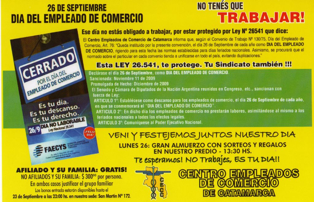 Lunes 26/09: "DIA DEL EMPLEADO DE COMERCIO” las actividades