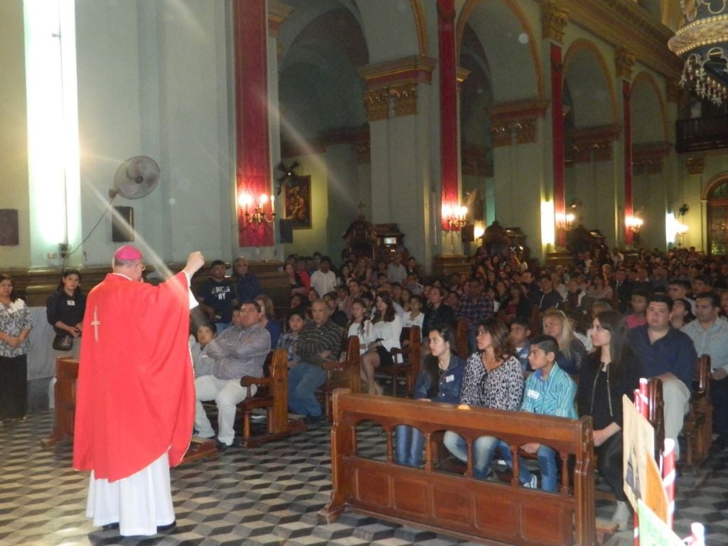 En su homilía, el Obispo felicitó a los presentes por compartir esta gran fiesta como comunidad y en la casa de la Madre del Valle. Mantuvo un diálogo fluido con los jóvenes, mientras les explicaba las Escrituras y los alentó a ser miembros activos y responsables de su parroquia. También los animó a utilizar la tecnología para rezar y evangelizar, sacando su teléfono para compartirles una reflexión sobre las cruces en los lugares de trabajo.