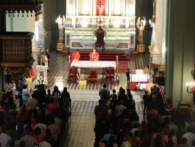 Los confirmandos junto a sus padrinos se ubicaron en la nave central del Santuario Mariano, mientras que sus familiares y demás miembros de la parroquia completaron las naves laterales en un clima de emoción y alegría cristiana.