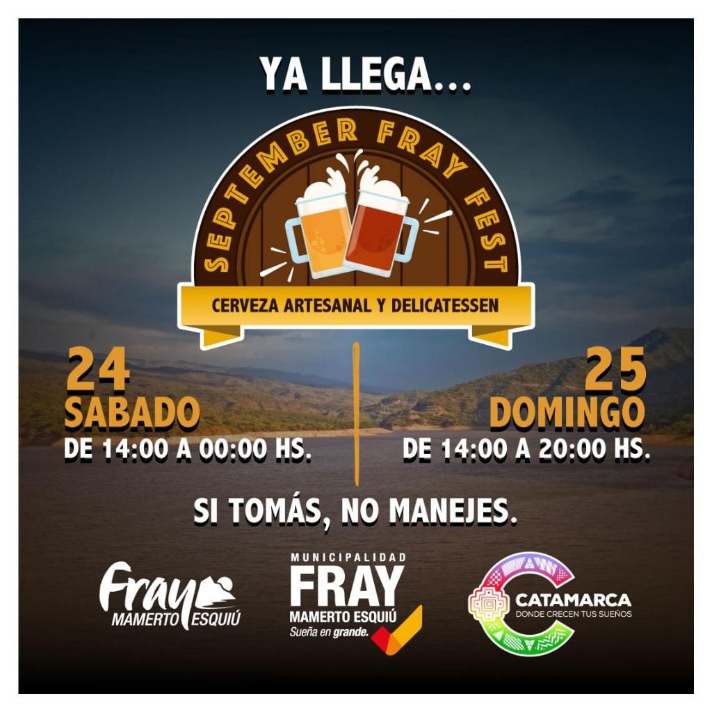la Cerveza Artesanal "September Fray Fest”, una propuesta única para que los asistentes puedan degustar una variedad de cervezas artesanales fabricadas con manos catamarqueñas. La fiesta es organizada por la Municipalidad de Fray Mamerto Esquiú con el acompañamiento