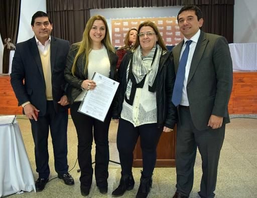 El acto se realizó con la presencia de los beneficiados, dirigente del SOEM y la presidente del Concejo Deliberante, Susana Costa, entre otros.