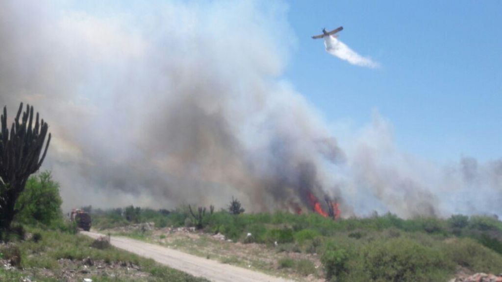 Un total de 30 personas, cuatro camiones hidrantes de bomba, un avión hidrante, están abocados, entre Bomberos de la policía de la provincia, bomberos voluntarios de valle viejo, Brigada de Lucha Contra Incendios Forestales, y con colaboración de la municipalidad de Fray Mamerto Esquiú.