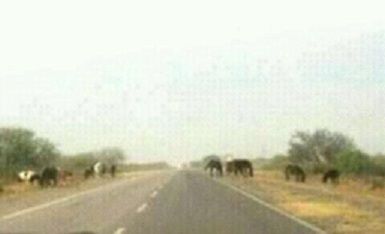 animales equinos, bovinos y caprinos que literalmente se adueñan de la calzada,