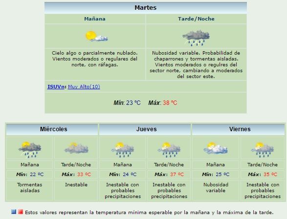 probables precipitaciones, mientras que para el viernes se pronostica nubosidad