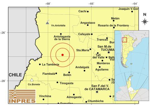Epicentro: 212 Km. al O de San Miguel De Tucumán, 230 Km. al