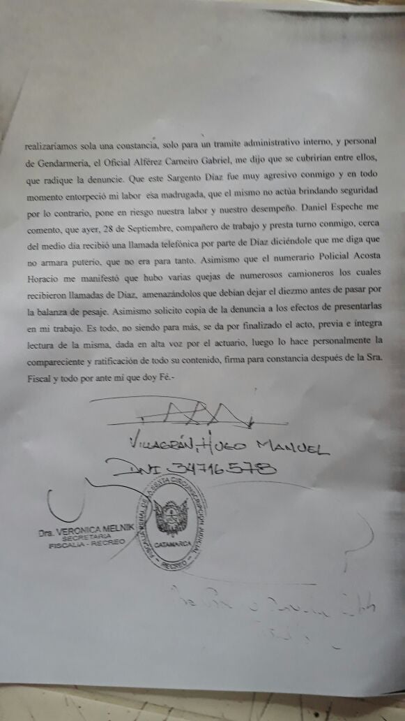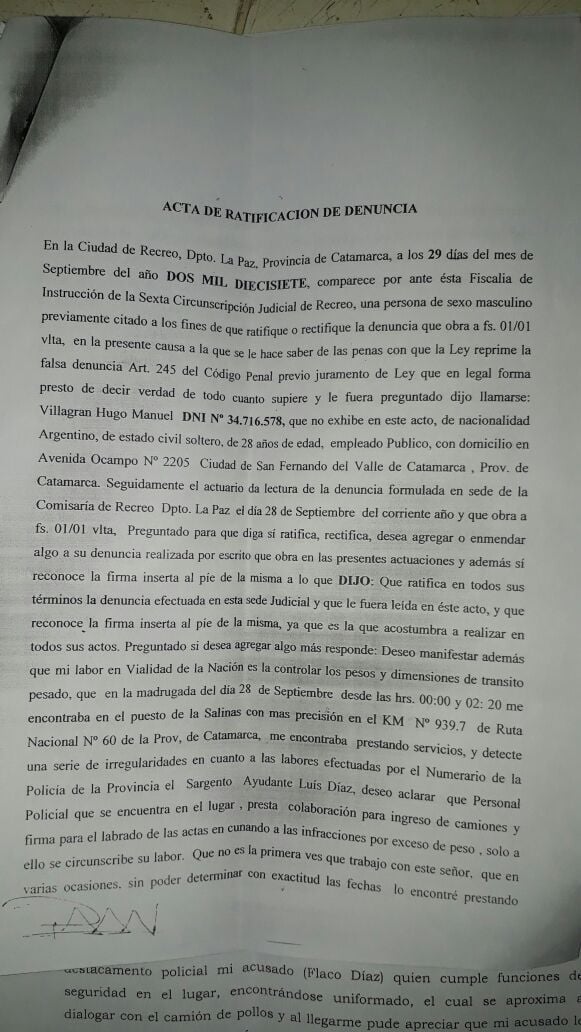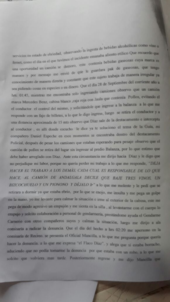 apellido Díaz, asegurando que éste intentó "coimear” a un camionero y evitó que