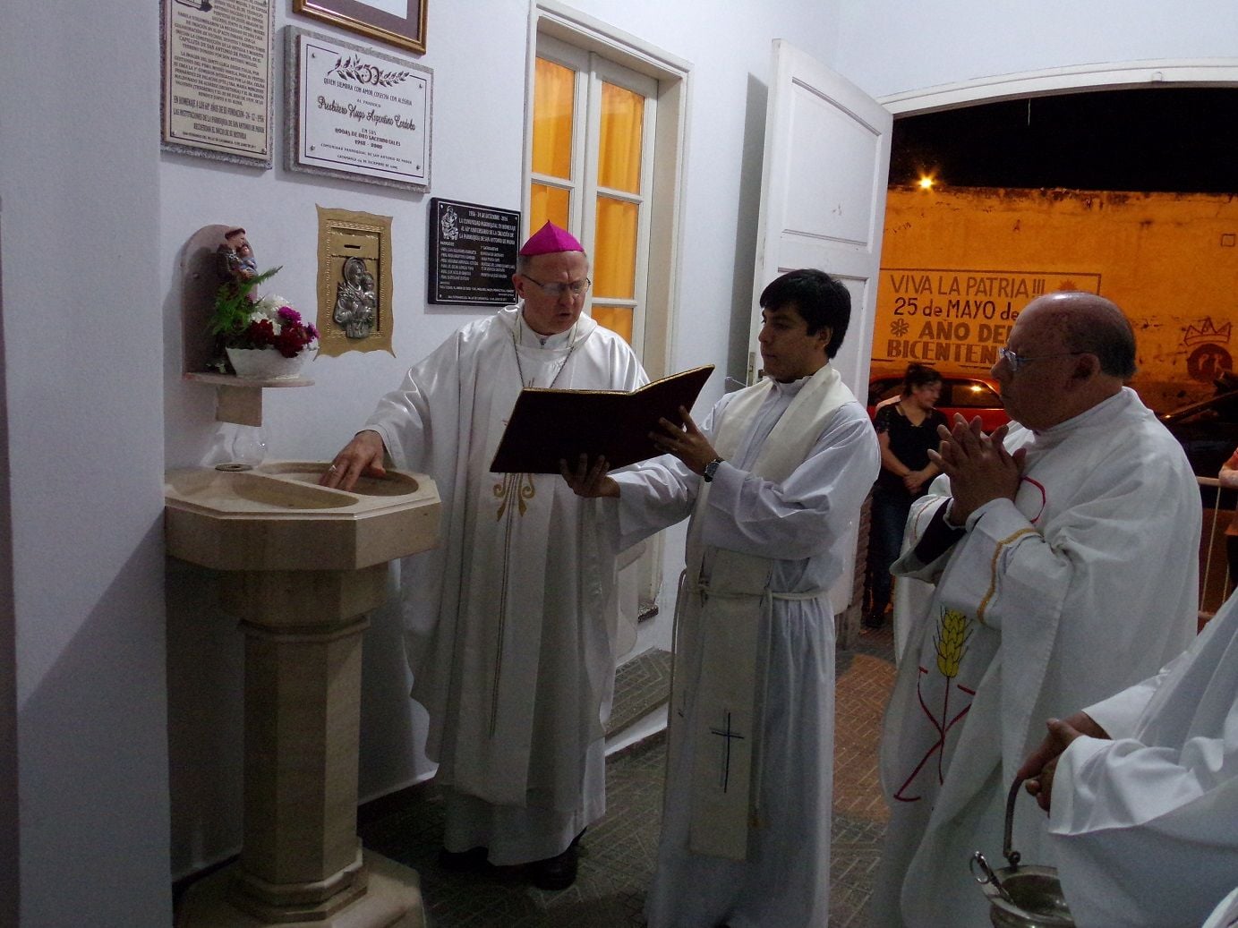 Urbanc bendijo la pila bautismal que fue trasladada hasta el ingreso del