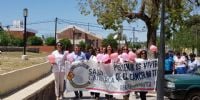 con los vecinos llevando globos de color rosado para visibilizar la problemática.