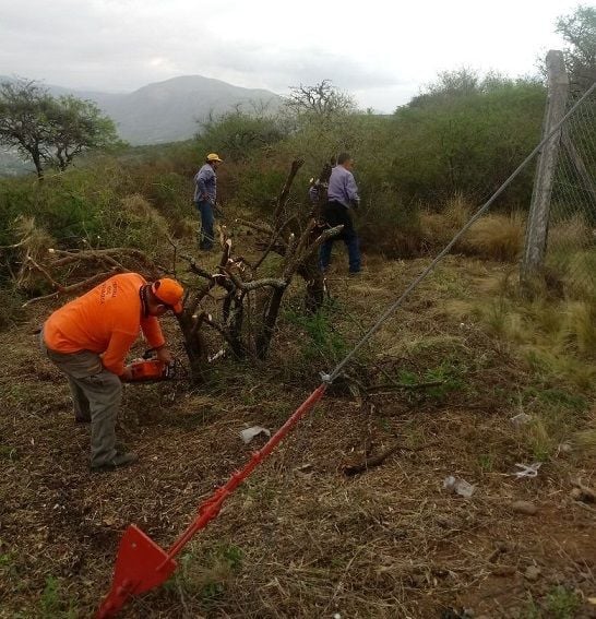 Los trabajadores efectuaron la limpieza de todo el predio donde se encuentran los equipos y las antenas de comunicaciones para reducir el riesgo de incendio forestal en el lugar.