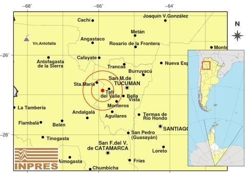 Epicentro: 69 Km. al O de San Miguel De Tucumán, 173 Km. al