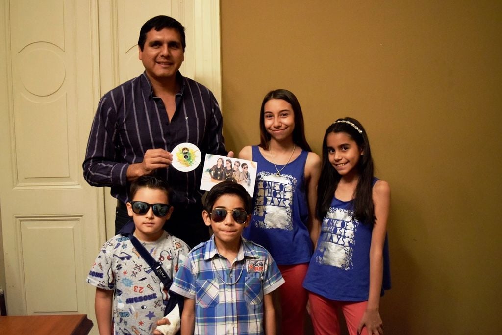 acompañados por sus padres Carlos Avellaneda y Mariela Castro con motivo de