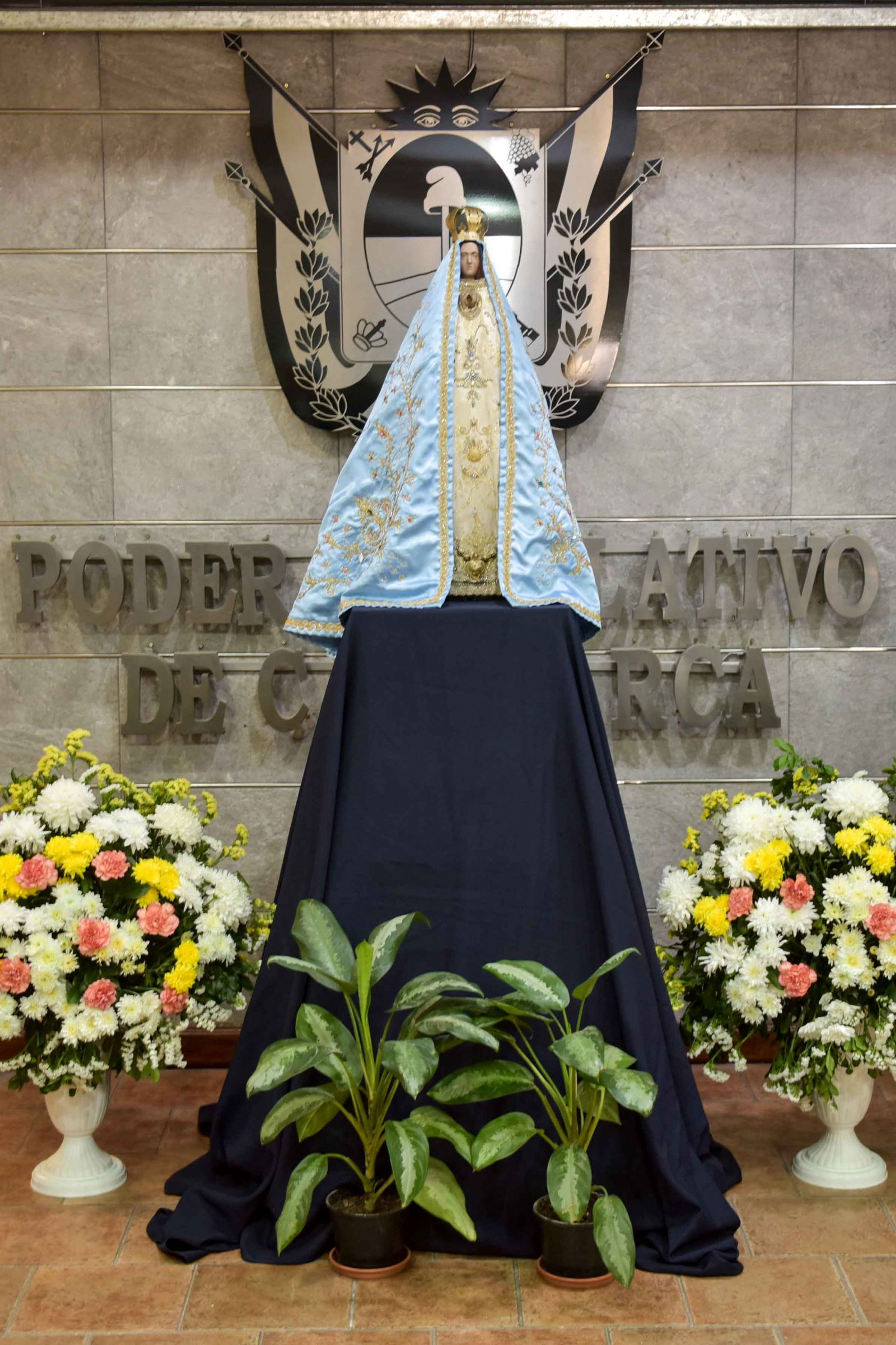 Entre vivas y aplausos, siendo colocada la Morena Virgen del