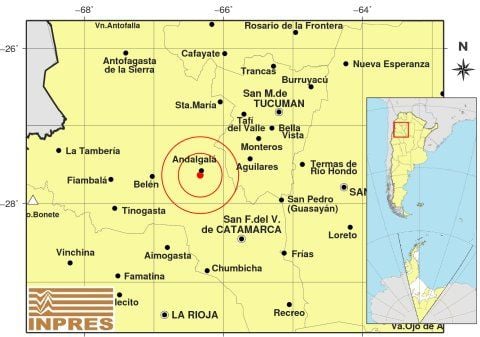 Epicentro: 107 Km. al NO de San F. Del Valle De Catamarca,