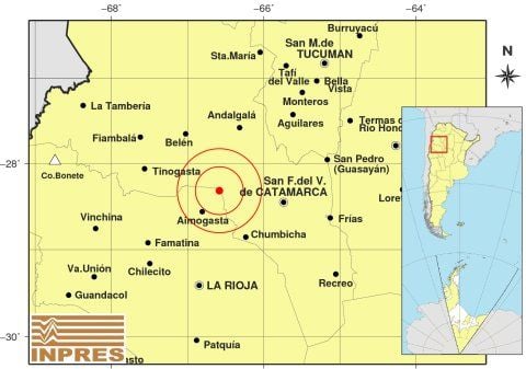 Epicentro: 84 Km. al O de San F. Del Valle De Catamarca, 124