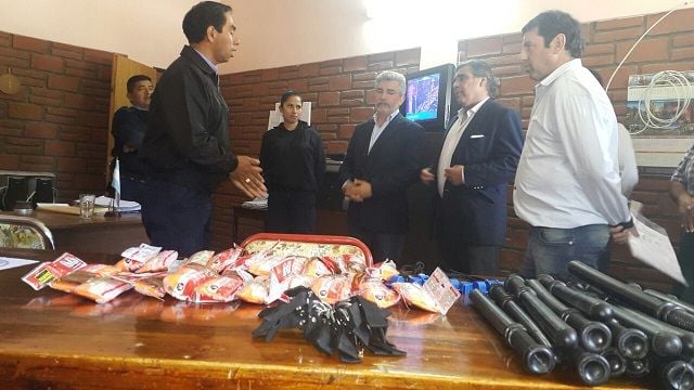 Por otra parte el Raúl Chico hizo entrega de elementos de seguridad a la comisaria de San José, "como un gesto del secretario de seguridad de la provincia". "Esto fue producto de una reunión que tuvimos, previo al encuentro con la Gobernadora, debido a que había estado reunido con los jefes de las comisarias de Santa María y San José donde me manifestaron algunas inquietudes y algunas necesidades que está teniendo la policía local. Por ejemplo un vehículo 4 x 4 y más personal. Ante esto la gobernadora estuvo de acuerdo y el Secretario de Seguridad de la provincia, Marcos Denett, se comprometió a resolverlo al tema a mediano plazo y a modo de gesto les envió todos estos elementos de seguridad que entregamos hoy en las comisarias”, afirmó el ministro Raúl Chico