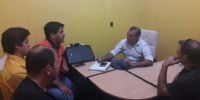 El director de Defensa Civil, Martín Caselli, junto al jefe de la Brigada de Lucha contra Incendios Forestales de Catamarca, Cristian Velárdez, y pilotos de aviones pertenecientes al Plan Nacional del Fuego, se reunieron este lunes con el intendente de Los Varela (Ambato), Marcelo Saavedra.