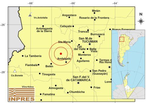 Epicentro: 143 km al O de San Miguel De Tucumán, 158 km al NO de San F. Del Valle De Catamarca, 46 km al NO de Andalgalá. -27.229 (lat) -66.564 (long)