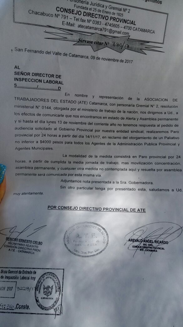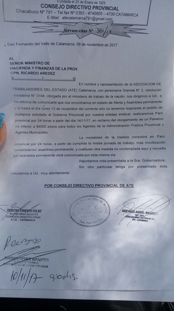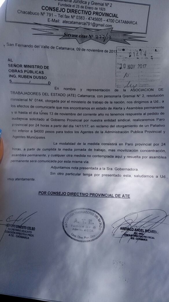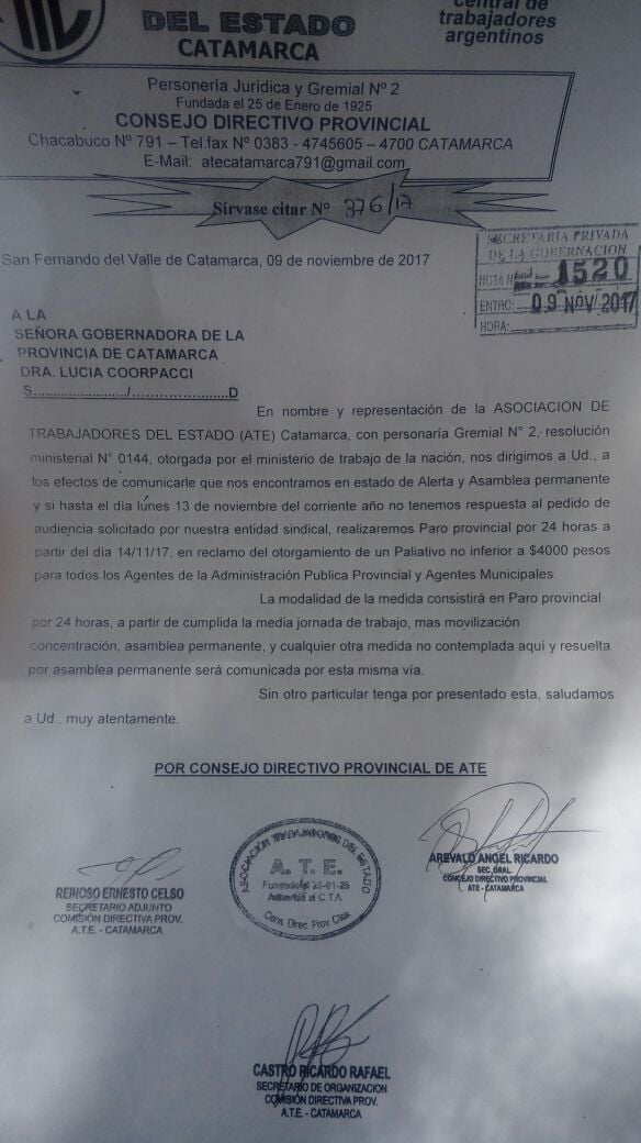 Desde el gremio ATE ya cursaron las notas a la gobernadora