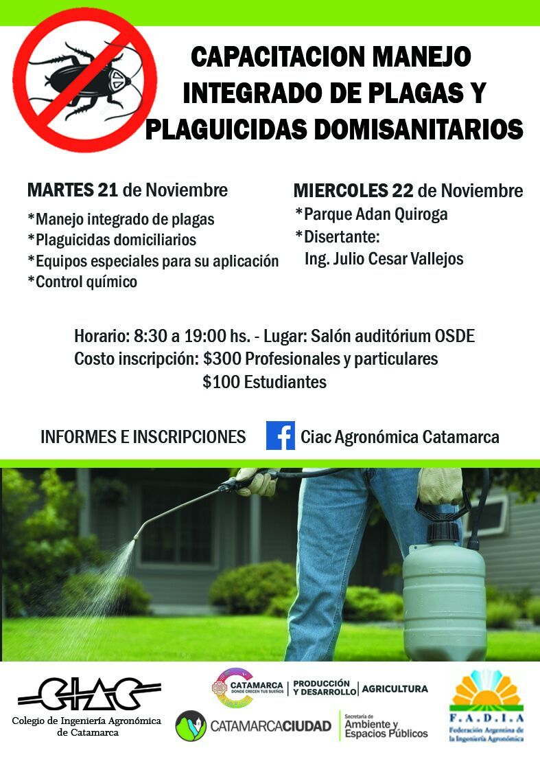 Se dictará los días martes 21 y miércoles 22 en los salones de OSDE, en avenida Ocampo y Conesa, y la capacitación está destinadas a empresas de desinfección en forma obligatoria, ONG's, ingenieros agrónomos y estudiantes de Agronomía.