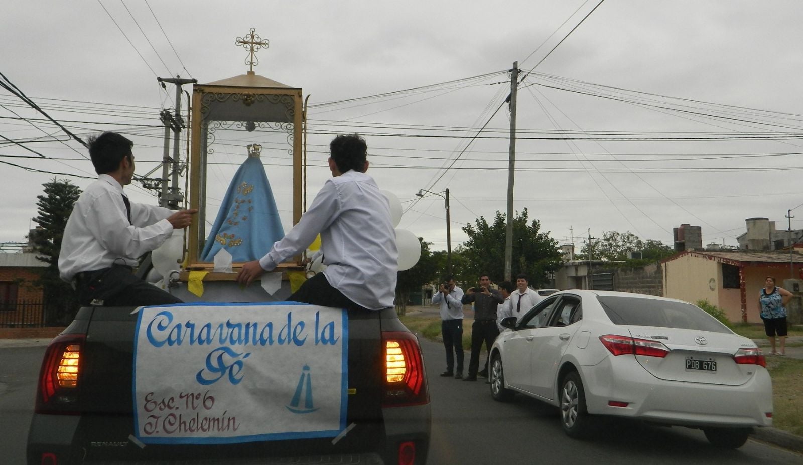 Capellán del Santuario Mariano, escoltada por los agentes motorizados de