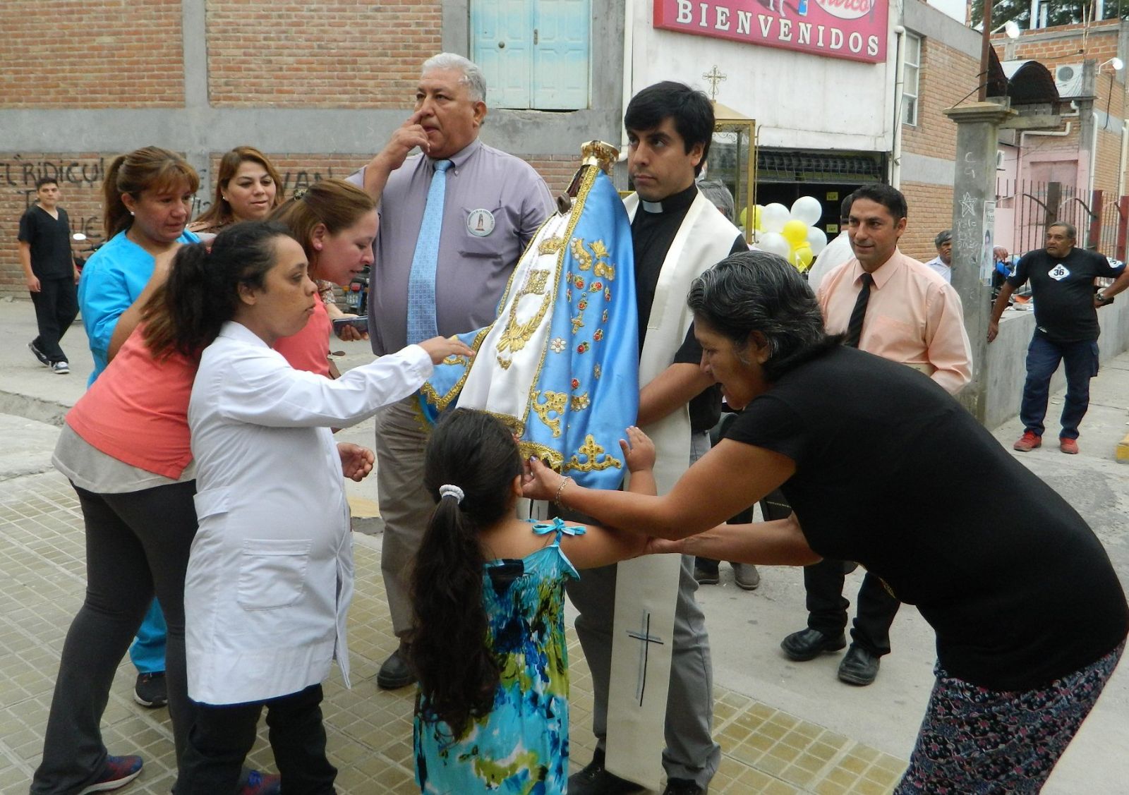 imagen peregrina desde la Catedral Basílica, junto con el Pbro. Lucas Segura,