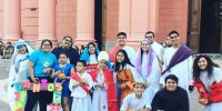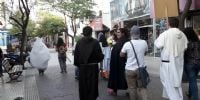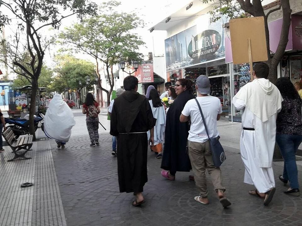plaza 25 de Agosto desde donde caminaron vestidos de santos por la peatonal