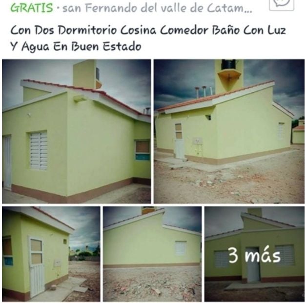 A través de Facebook, se ofrecía una casa de dos dormitorios, cocina, comedor, baño y los servicios de luz y agua, a un precio de $700.000.
