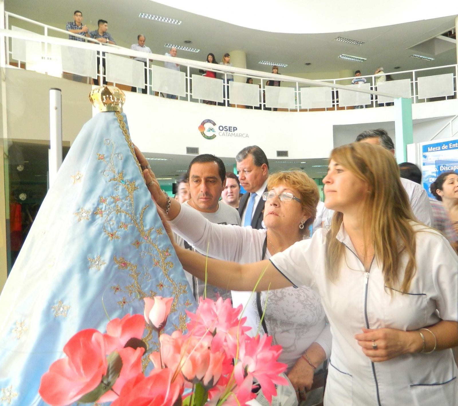 obra social se acercaron a tomar gracia de la Imagen peregrina en el altar que