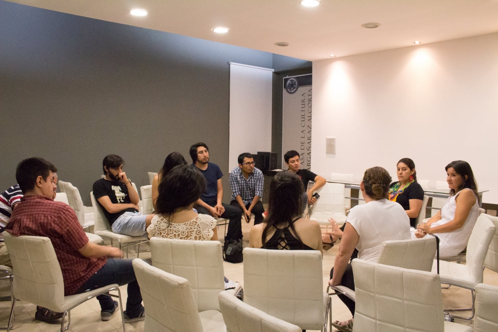 Previo a que se diera por inaugurada la muestra, se llevó a cabo una charla abierta de los artistas que integran el programa con artistas locales, la que generó un interesante debate de ideas, intercambio de pareceres y expectativas generales sobre la escena regional.