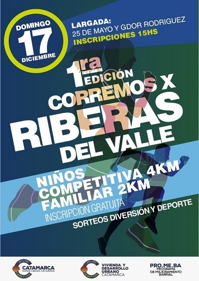 En consecuencia con todo lo realizado, “Corremos por Riberas del Valle” será una excelente ocasión para que los vecinos del lugar disfruten de un gran día junto a los suyos en su propio barrio. La jornada deportiva buscará ser, así, un incentivo para la práctica de actividades al aire libre y en familia, lo que sin dudas se traducirá en la consolidación de los vínculos comunitarios que la Secretaría de la Vivienda y otras áreas del Gobierno Provincial vienen construyendo desde hace largos años.
