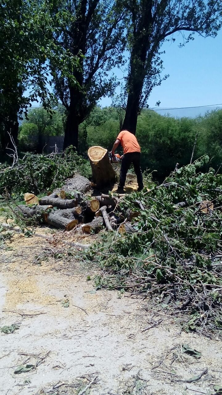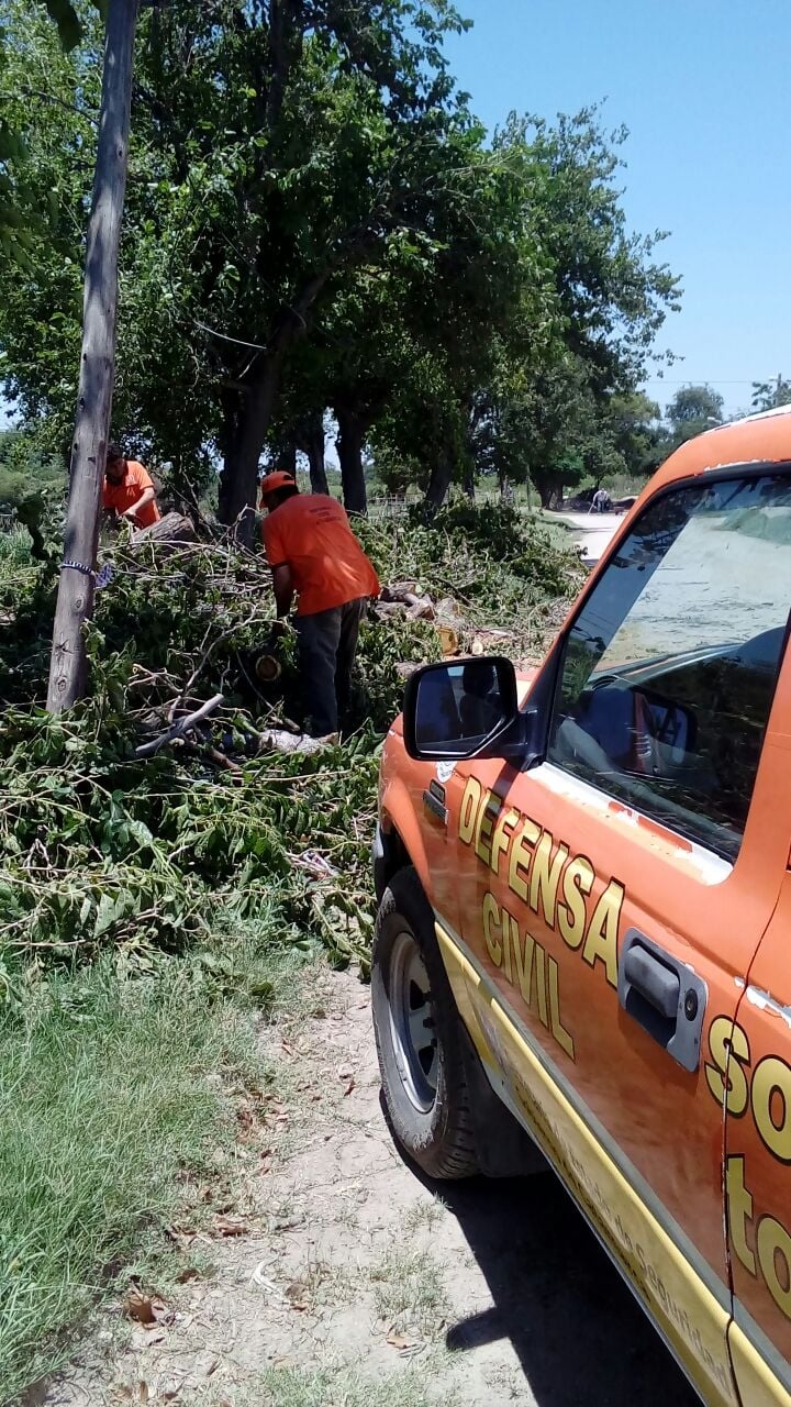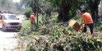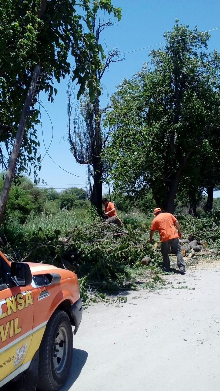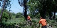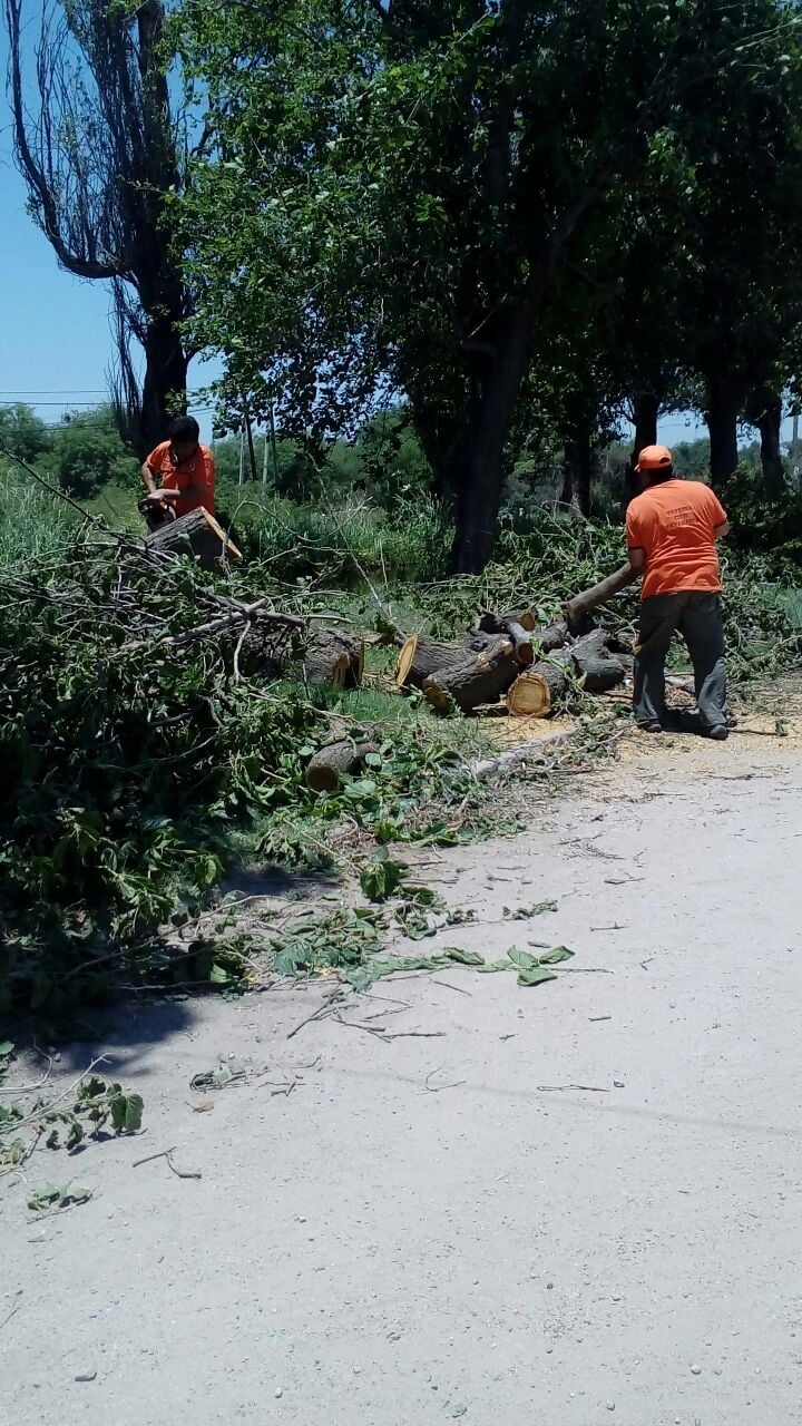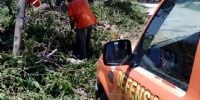 Tras varias horas de trabajo, y dotados con elementos de corte, los operarios lograron retirar las ramas que obstaculizaban el tránsito en el camino comunal.