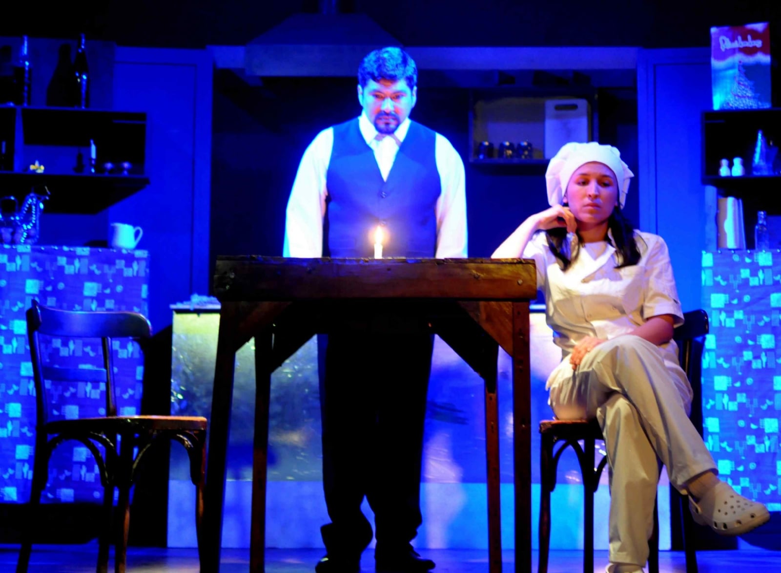 Sin otra posibilidad, y alumbrados por la luz de una vela, Matías y Lucía tejen diálogos en los que lo que se dice abre un juego de interpretaciones por todo lo que no se dice.