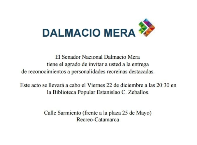 La ceremonia será presidida por el senador nacional Dalmacio Mera.
